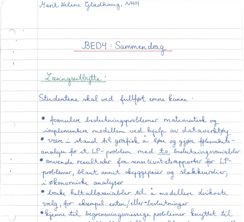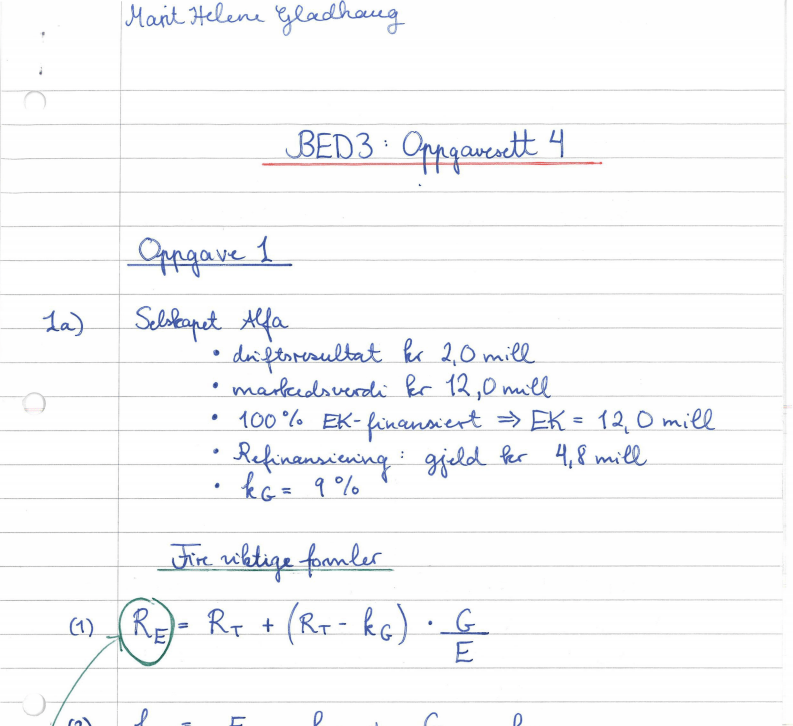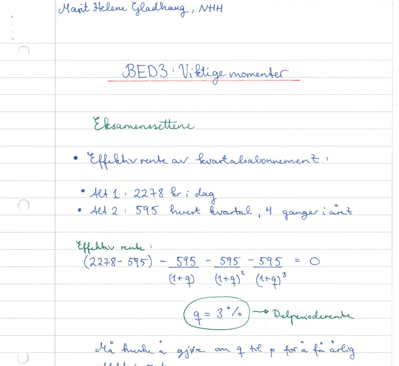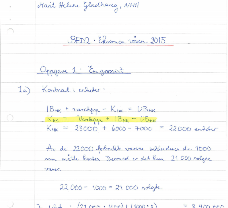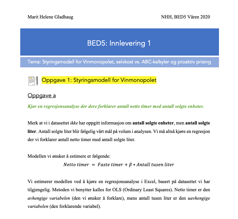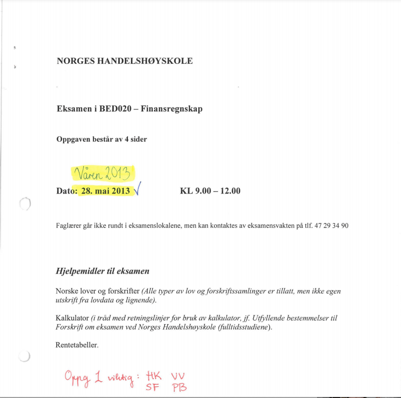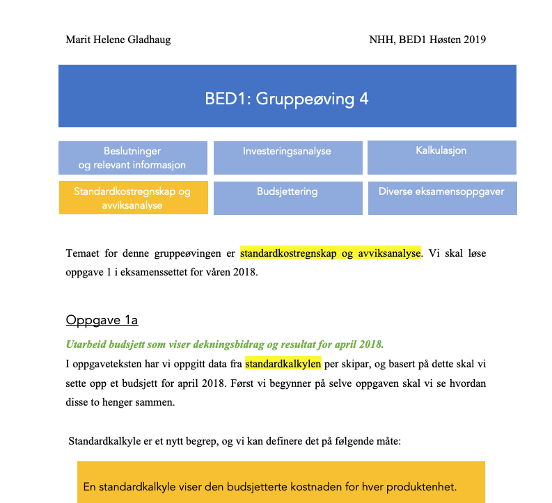 Bedriftsøkonomi BED1 – Grunnleggende bedriftsøkonomi Løsningsforslag til gruppeøving 1LAST NED Løsningsforslag til gruppeøving 2Last ned Løsningsforslag til gruppeøving 3LAST NED Løsningsforslag til gruppeøving 4LAST NED Løsningsforslag til gruppeøving 5LAST NED Løsningsforslag til gruppeøving 6LAST NED BED2 – Finansregnskap Gruppesamling 1 LAST NED Gruppesamling 2 LAST NED Gruppesamling 3 LAST NED Gruppesamling 4 LAST NED Gruppesamling 5 LAST NED Eksamensoppgaver 2013-2016LAST NED Løsningsforslag til eksamen våren 2013LAST NED Løsningsforslag til eksamen våren 2014LAST NED Løsningsforslag til eksamen høsten 2014LAST NED Løsningsforslag til eksamen våren 2015LAST NED Løsningsforslag til eksamen høsten 2015LAST NED Løsningsforslag til eksamen våren 2016LAST NED Forelesningsnotater LAST NED NotaterLAST NED BED3 – Investering og finans Løsningsforslag til oppgavesett 1 (digitalt) LAST NED Løsningsforslag til oppgavesett 1 (håndskrevet)LAST NED Løsningsforslag til oppgavesett 2LAST NED Løsningsforslag til oppgavesett 3LAST NED Løsningsforslag til oppgavesett 4LAST NED Løsningsforslag til oppgavesett 5LAST NED Viktige momenter fra oppgavesettene LAST NED Eksamensoppgaver 2015-2017LAST NED Løsningsforslag til eksamen våren 2015LAST NED Løsningsforslag til eksamen høsten 2015LAST NED Løsningsforslag til eksamen våren 2016LAST NED Løsningsforslag til eksamen høsten 2016LAST NED Løsningsforslag til eksamen våren 2017LAST NED Løsningsforslag til eksamen høsten 2017LAST NED Viktige momenter fra eksamenssettene LAST NED Formelark med kommentarerLAST NED Oversikt over pensumLAST NED Nyttige linker: Forklaring til oppgave 1c, oppgavesett 5 i BED3 Hvordan løse ligninger ved hjelp av Solver på kalkulator BED4 – Bedriftsøkonomiske beslutninger Sammendrag LAST NED BED5 – Økonomisystemer og økonomistyring Løsningsforslag til gruppeøvelse 1 LAST NED Løsningsforslag til gruppeøvelse 2 LAST NED Løsningsforslag til gruppeøvelse 3 LAST NED Løsningsforslag til innlevering 1 LAST NED Løsningsforslag til innlevering 3 LAST NED Guide og formler til avviksanalyse LAST NED Viktige momenter LAST NED