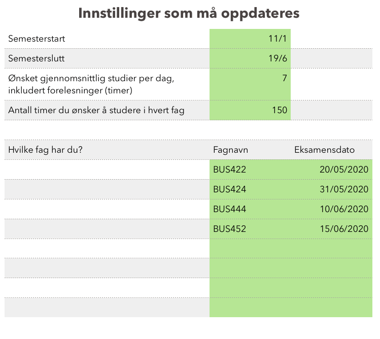 Nå nærmer det seg semesterstart og i den anledning har jeg i samarbeid med min gode venn Christian Braathen gjort klart en mal for føring av studietimer. Etter at jeg skrev dette innlegget fikk jeg nemlig flere forespørsler om jeg kunne legge ut en mal for føring av studietimer. Nå ligger endelig malen ute, og den kan lastes ned her. Merk at filtypen kun støttes … Fortsett å lese Mal for føring av studietimer med instruksjonsvideo